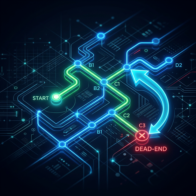O computador resolve isso utilizando uma técnica chamada Backtracking (Retrocesso/Tentativa e Erro Estruturado). A ideia base é: